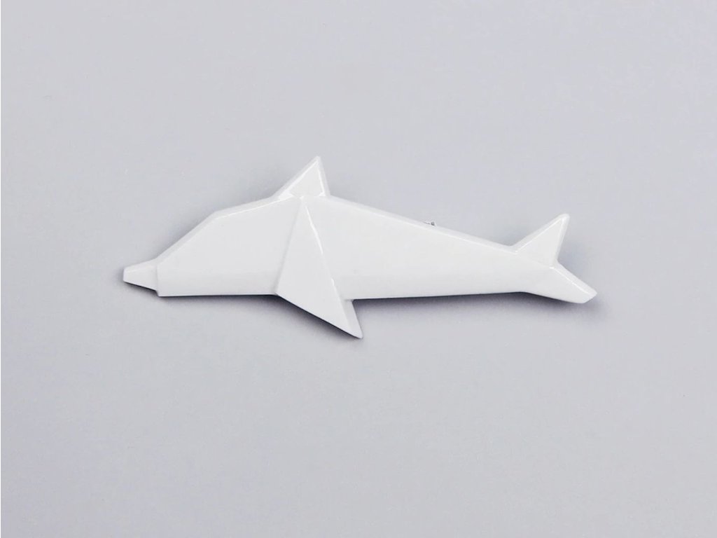 Ručne modelovaná porcelánová brošňa v tvare delfína čerpá inšpiráciu z tradičného japonského origami. Minimalistický, geometrický dizajn spája precízne remeslo s hlbokou symbolikou – ide o štýlový doplnok s dušou.