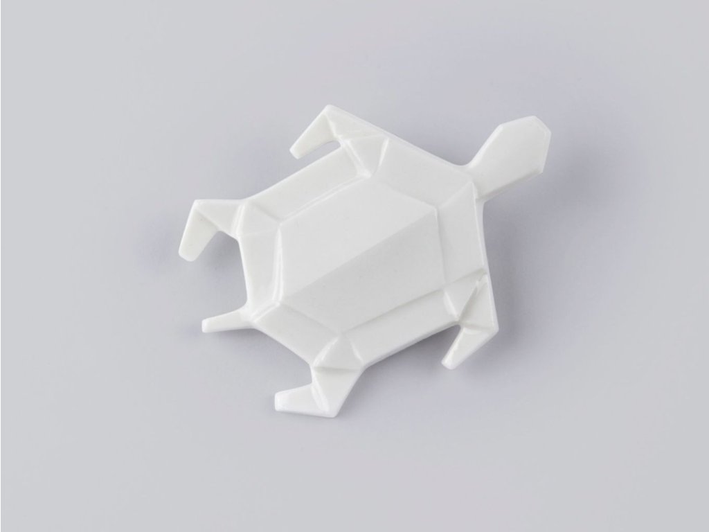Jemná porcelánová brošňa v tvare korytnačky čerpá inšpiráciu z tradičného japonského umenia Origami. Jej geometrická forma spája precíznosť dizajnu s hĺbkou symboliky, čím vzniká šperk s výnimočným posolstvom.