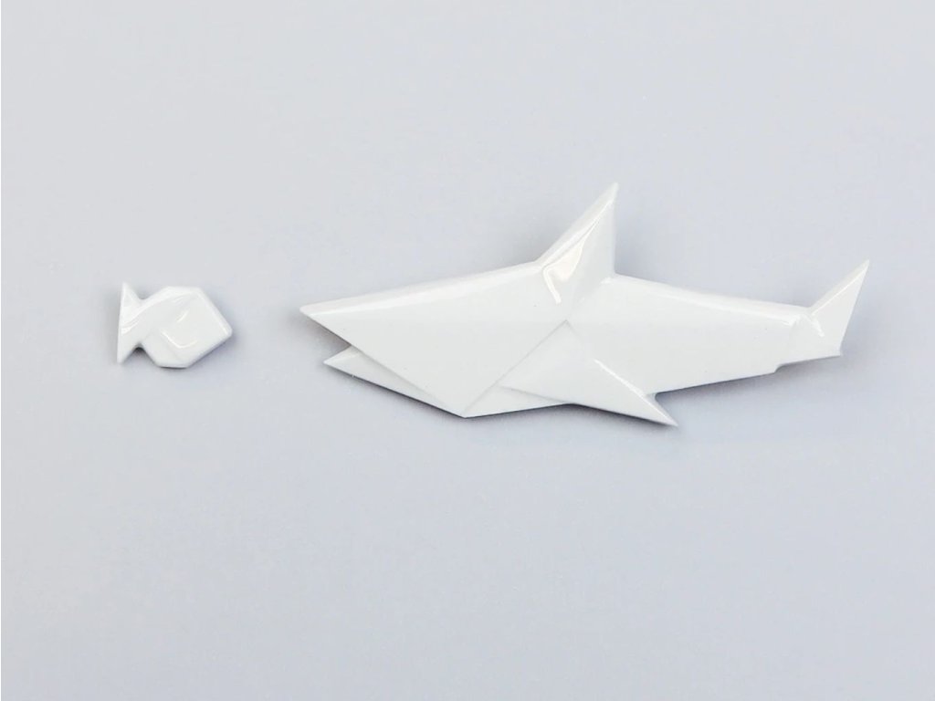 Minimalistický set porcelánových brošní žraloka a malej rybky je inšpirovaný jemnosťou a precíznosťou japonského umenia Origami. V spojení s porcelánom vzniká jedinečný dizajnový doplnok s hlbokým významom.