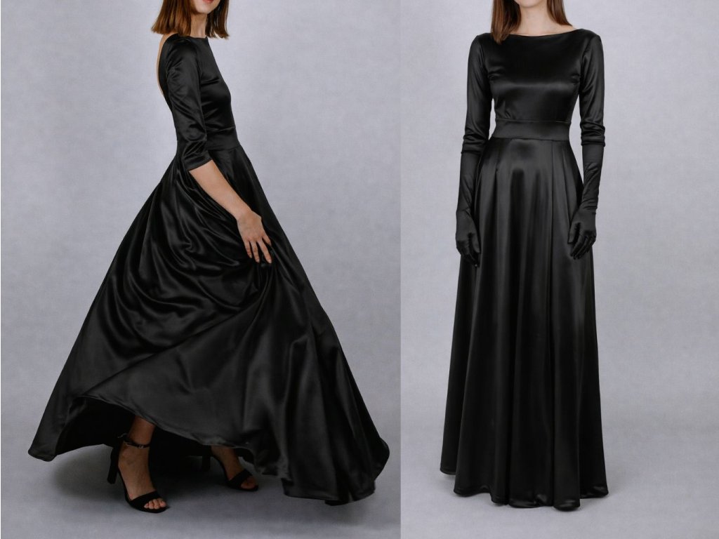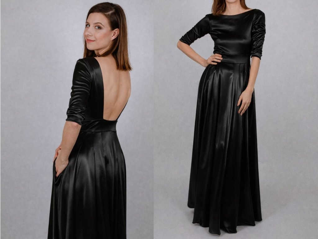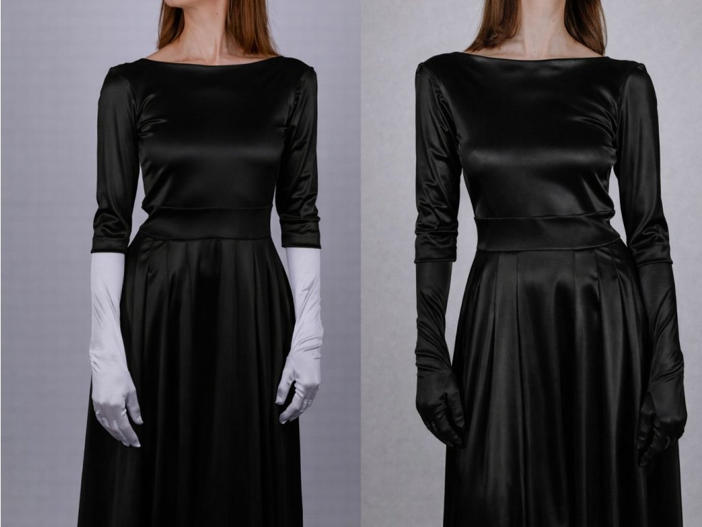 DLHÉ ŠATY AFRODITA Z PLAVKOVINY (ČIERNE) | MIESTNI