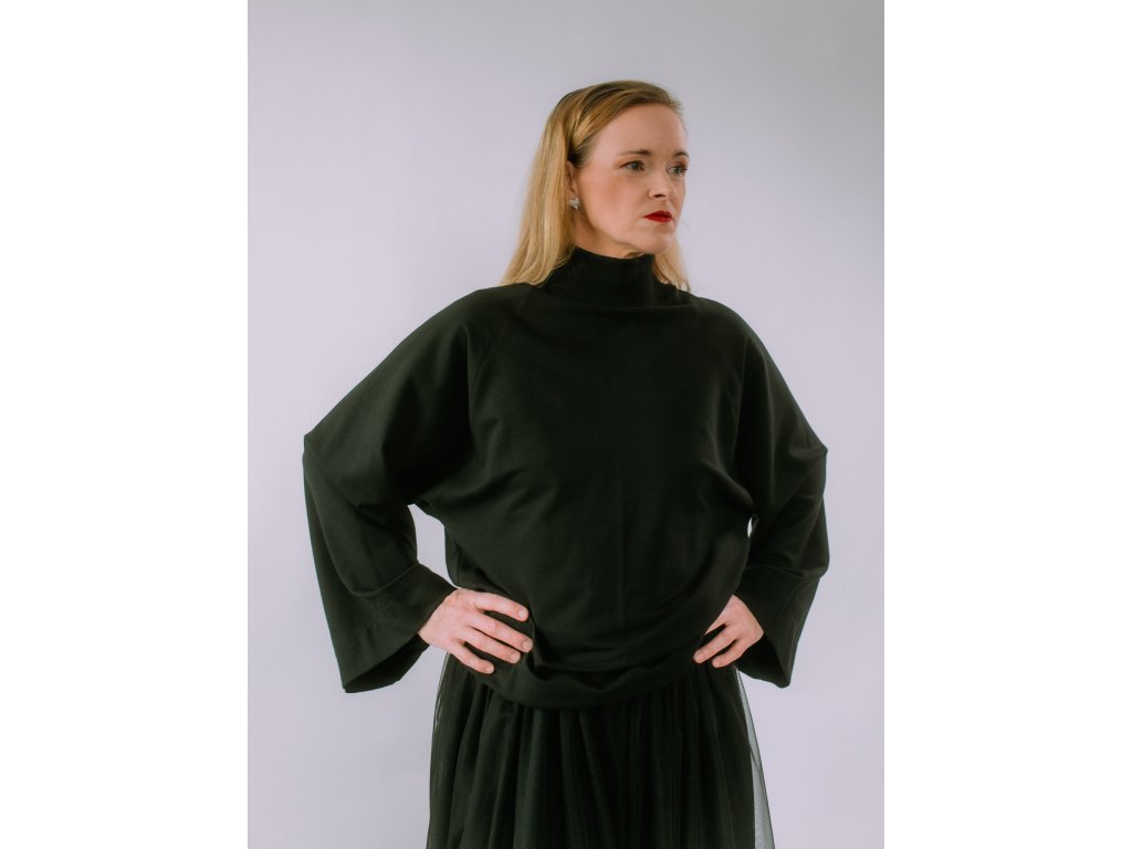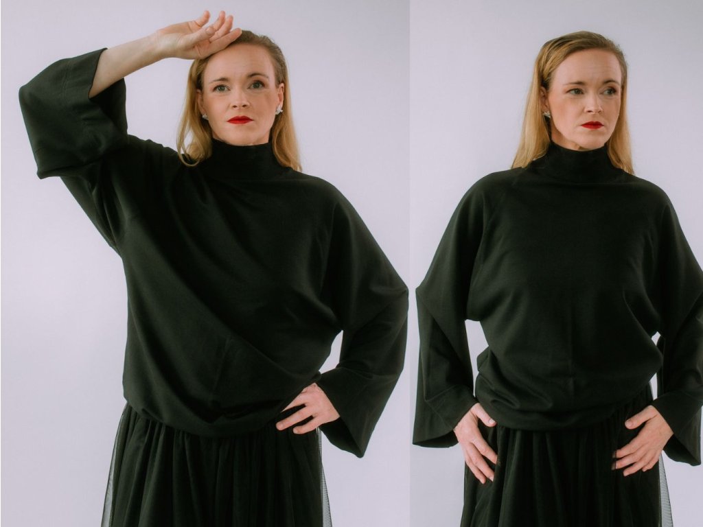 Mikina Laura je stelesnením pohodlia a štýlu. Ušitá z mäkkej, príjemnej teplákoviny, prinesie do vášho šatníka ležérnosť s originálnym detailom – výrazné, voľné dlhé rukávy, ktoré dodávajú celkovému vzhľadu šmrnc a ženskosť.
