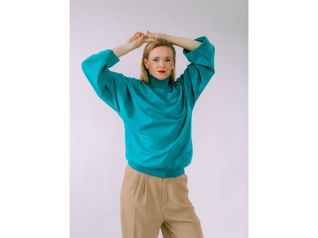 Dizajn je doplnený o rolákový golier z bavlneného patentu v rovnakej farbe a spodnú manžetu, ktorá dotvára celkový harmonický vzhľad mikiny. Vďaka tomu pôsobí vyvážene, minimalisticky a zároveň veľmi štýlovo. Je univerzálnym kúskom na každý deň – hodí sa k džínsom, sukniam aj k legínam. Môžete ju nosiť samostatne alebo vrstviť pod kabát či vestu. Vďaka svojmu nadčasovému strihu sa ľahko kombinuje a využijete ju počas celej sezóny.