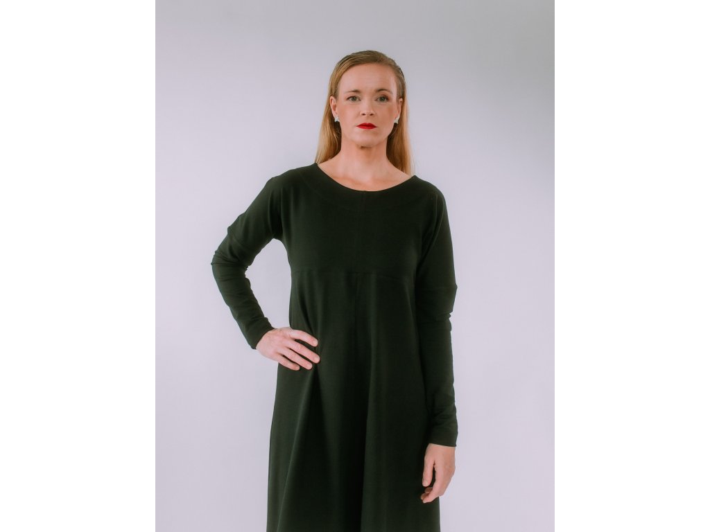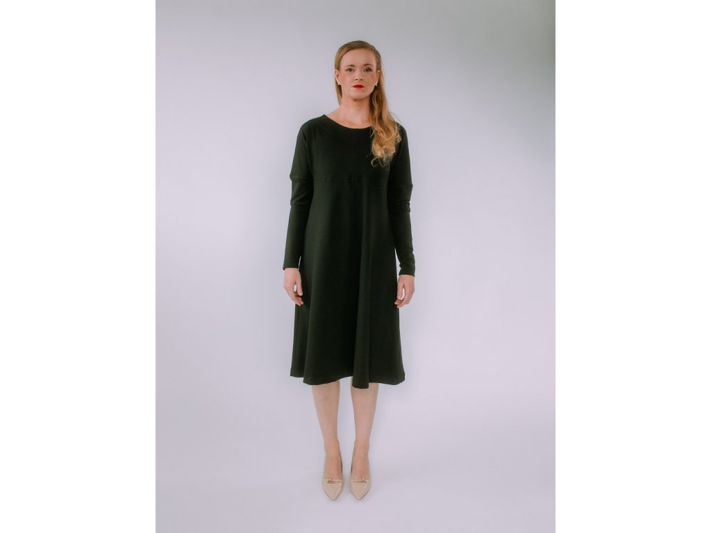 Pohodlie, ktoré si okamžite zamilujete. Šaty HANA sú ušité z príjemnej elastickej teplákoviny – mäkkej, hrejivej a ideálnej na jeseň aj zimu. Vďaka dlhým rukávom a midi dĺžke sú univerzálnym kúskom, ktorý využijete na každodenné nosenie aj pracovné stretnutia.