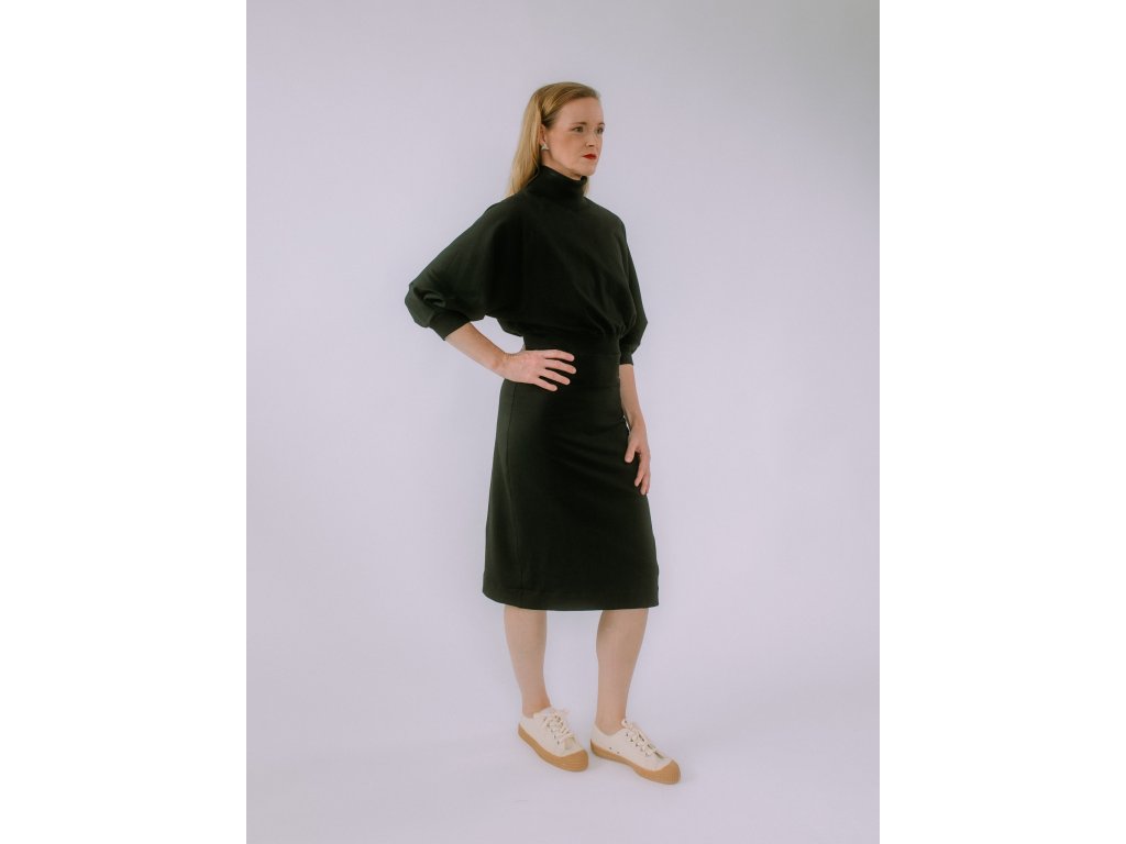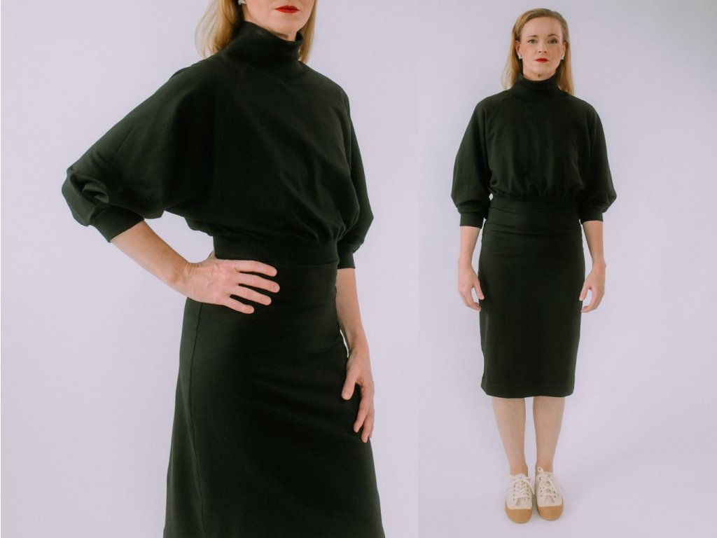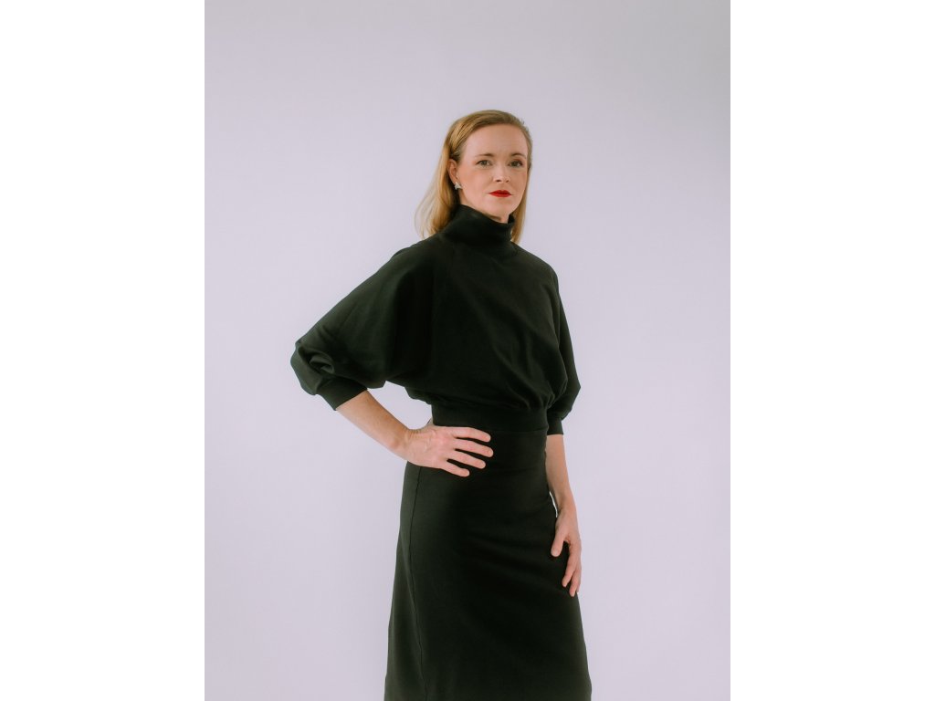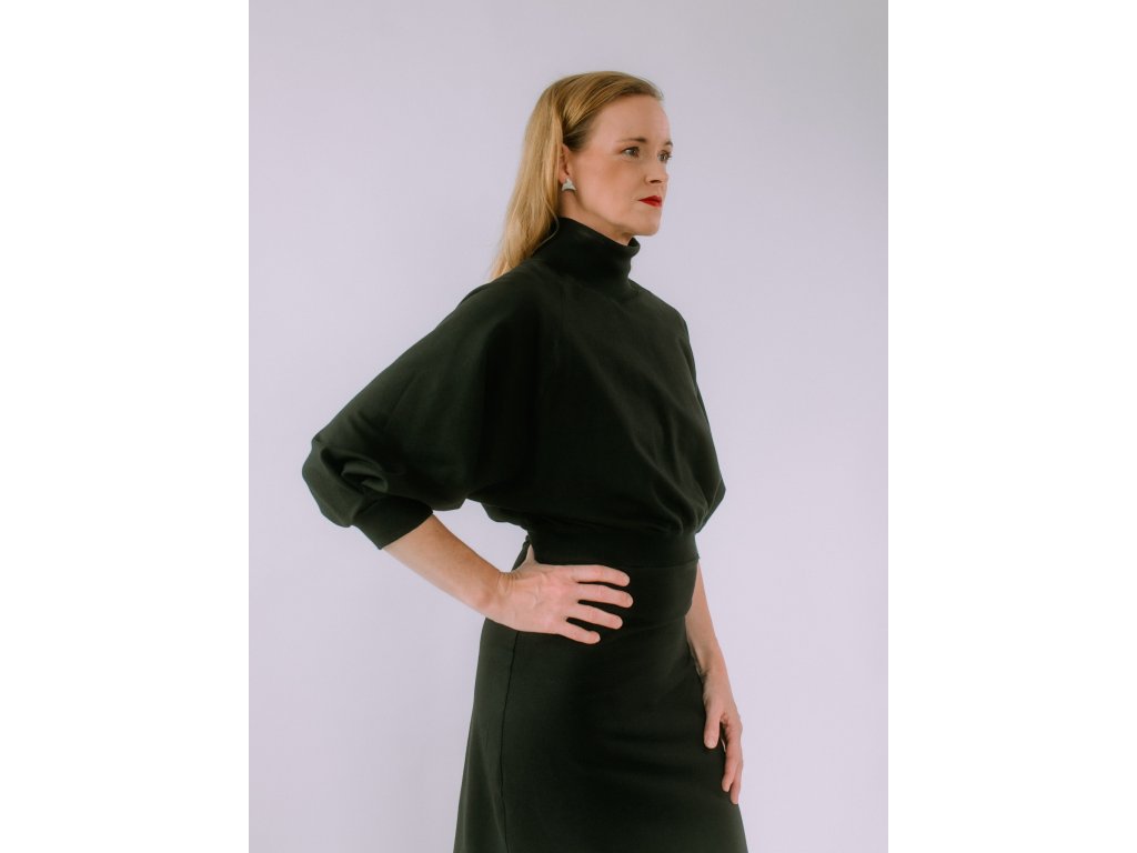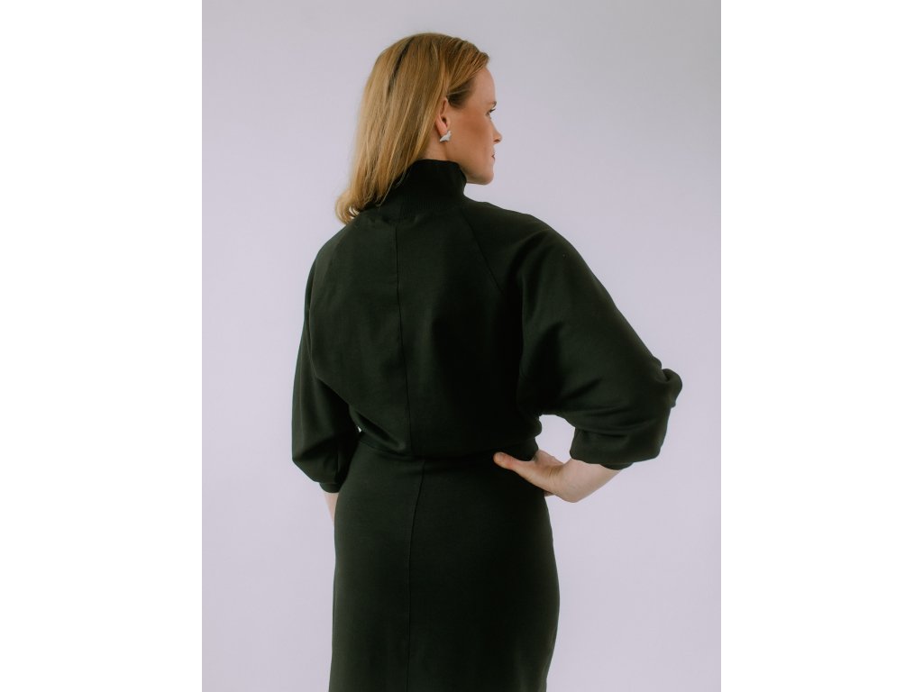 Majú prinechané ¾ rukávy, ktoré sú zakončené elastickým patentom v rovnakej farbe. Rovnaký detail nájdete aj v páse – jemne zvýrazní líniu a dodá šatám lichotivý tvar. Ozdobným prvkom je aj rolákový golier z elastického patentu, ktorý pôsobí elegantne a zároveň prakticky. Sukňová časť je doplnená o decentný rozparok na zadnom diele, vďaka čomu šaty pôsobia žensky a pohodlne pri pohybe.