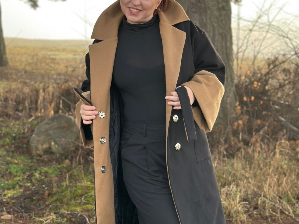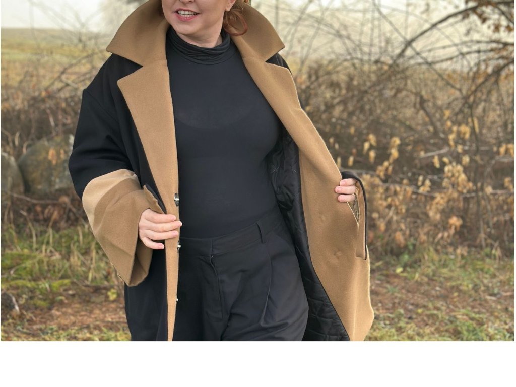 ZIMNÝ OVERSIZED KABÁT DAN (ČIERNO-HNEDÝ) | MIESTNI