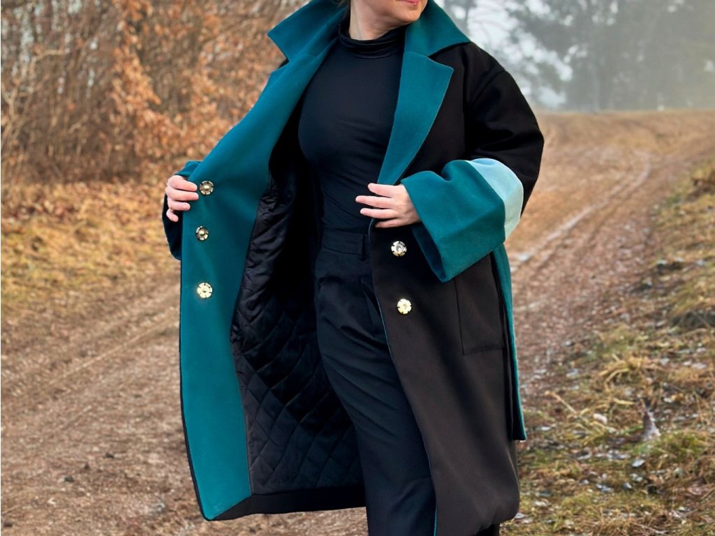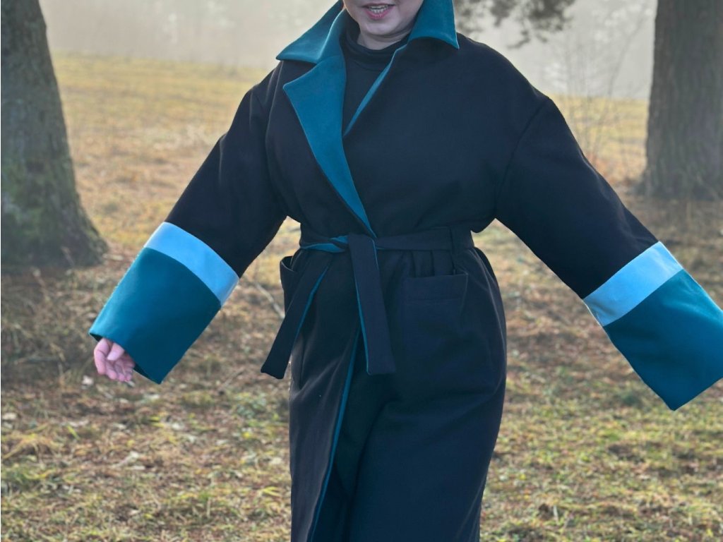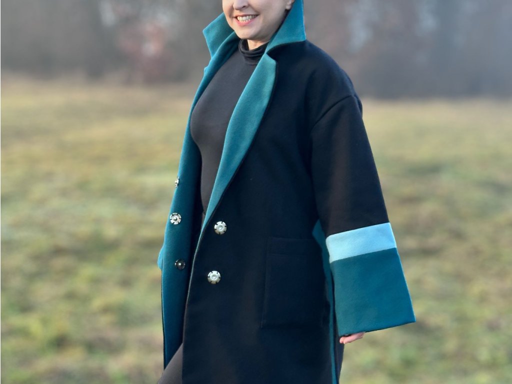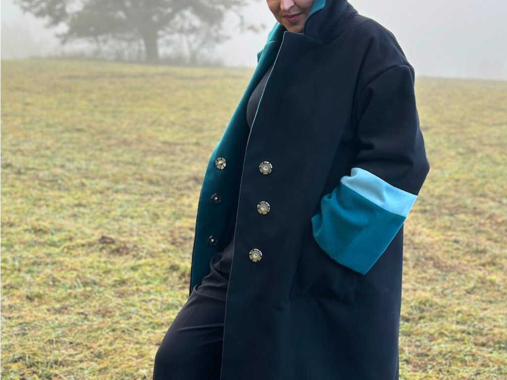 ZIMNÝ OVERSIZED KABÁT DAN (ČIERNO-MODRÝ) | MIESTNI