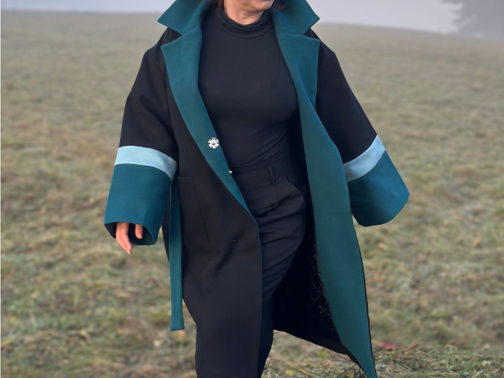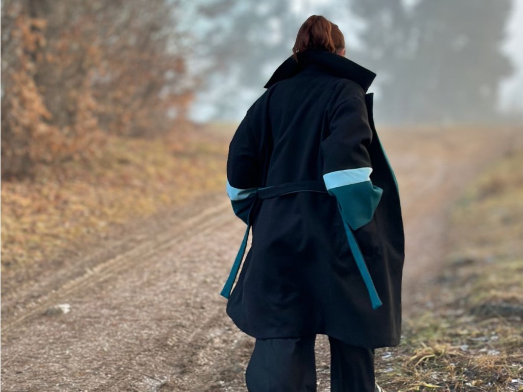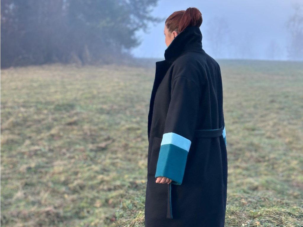 Kabát Dan je poctou vrstveniu, zimným dňom a pohodliu. Jeho oversized silueta prináša nenútenú eleganciu, zatiaľ čo výrazný akcent na rukávoch dodáva modelu charakter a moderný nádych. Golier a fazónka v modrom odtieni krásne zvýrazňujú jeho nadčasový dizajn. Kabát je vyrobený v prísne limitovanom počte dvoch kusov a má univerzálny strih, ktorý pohodlne sadne od veľkosti S po XL.