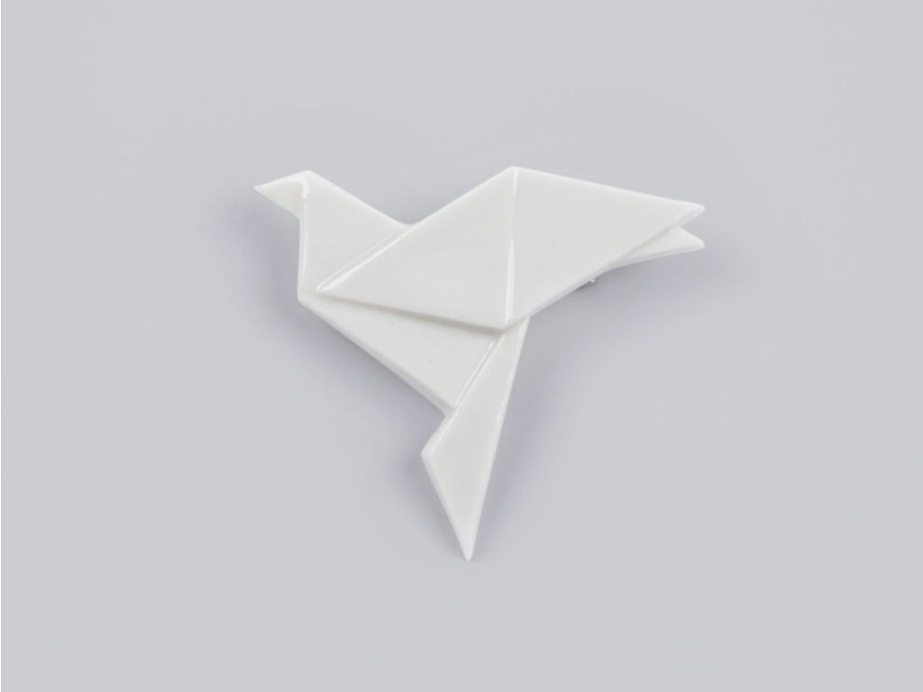 Táto porcelánová brošňa v tvare holubice je inšpirovaná umením japonského origami, ktoré spája eleganciu, jednoduchosť a hlbokú symboliku. Výsledkom je minimalistický a pritom výrazný doplnok s jemným duchovným rozmerom.