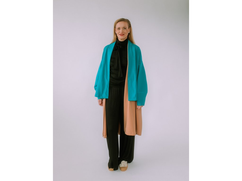 Variabilita, ktorú si zamilujete Naše kolekcie sú navrhnuté tak, aby ste ich vedeli ľahko a efektívne kombinovať. Pozrite sa, aký krásny outfit vznikne spojením vesty Lujza a kardigánu Vera. Môžete sa pohrať s kontrastom farieb alebo zvoliť elegantný monochromatický look v jednej farbe. Súčasťou každého kúsku sú aj opasky, ktoré vám dávajú ešte viac možností stylingu - krátky opasok na jednoduché uviazanie raz - dlhý opasok na dvojité obtočenie okolo pása. Vďaka nim si ľahko prispôsobíte výsledný vzhľad – voľný, ležérny alebo zvýraznený v páse.