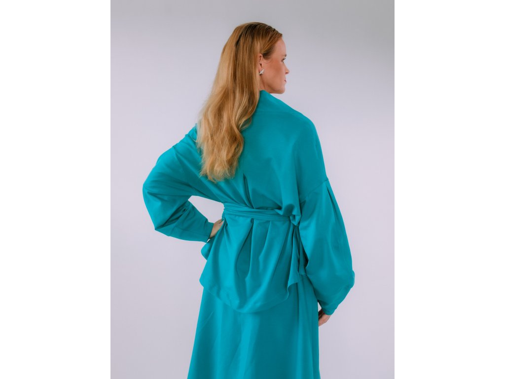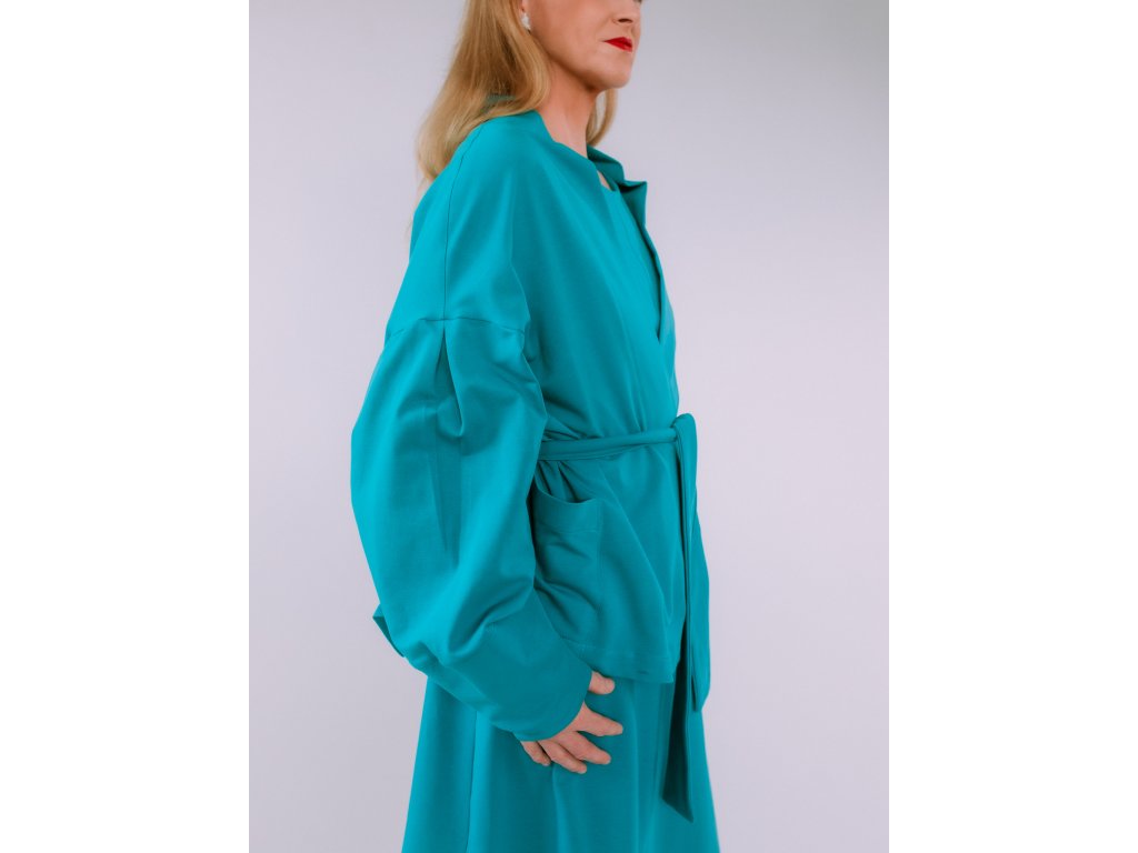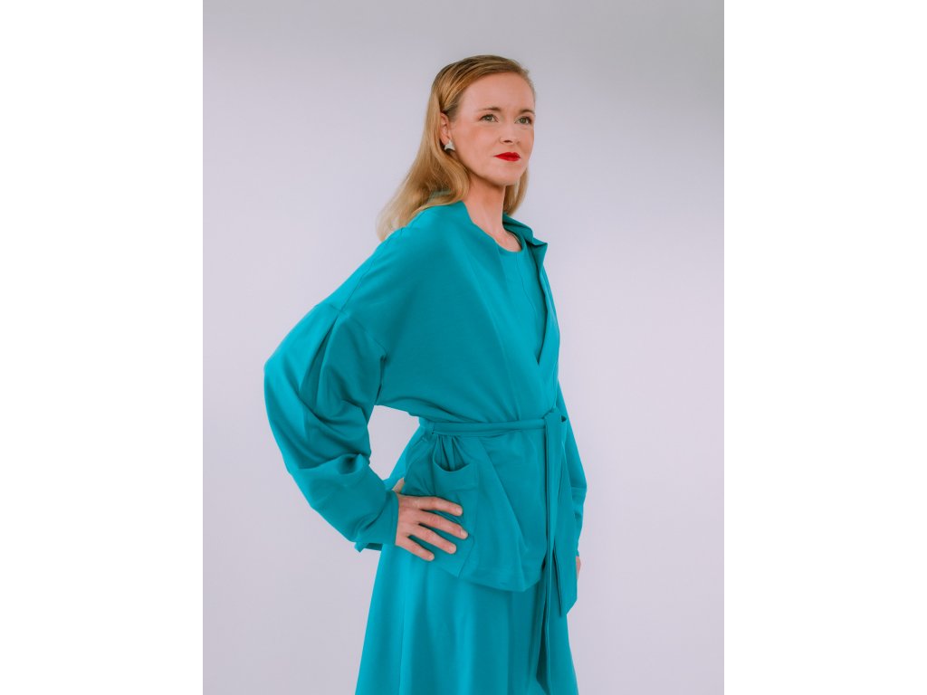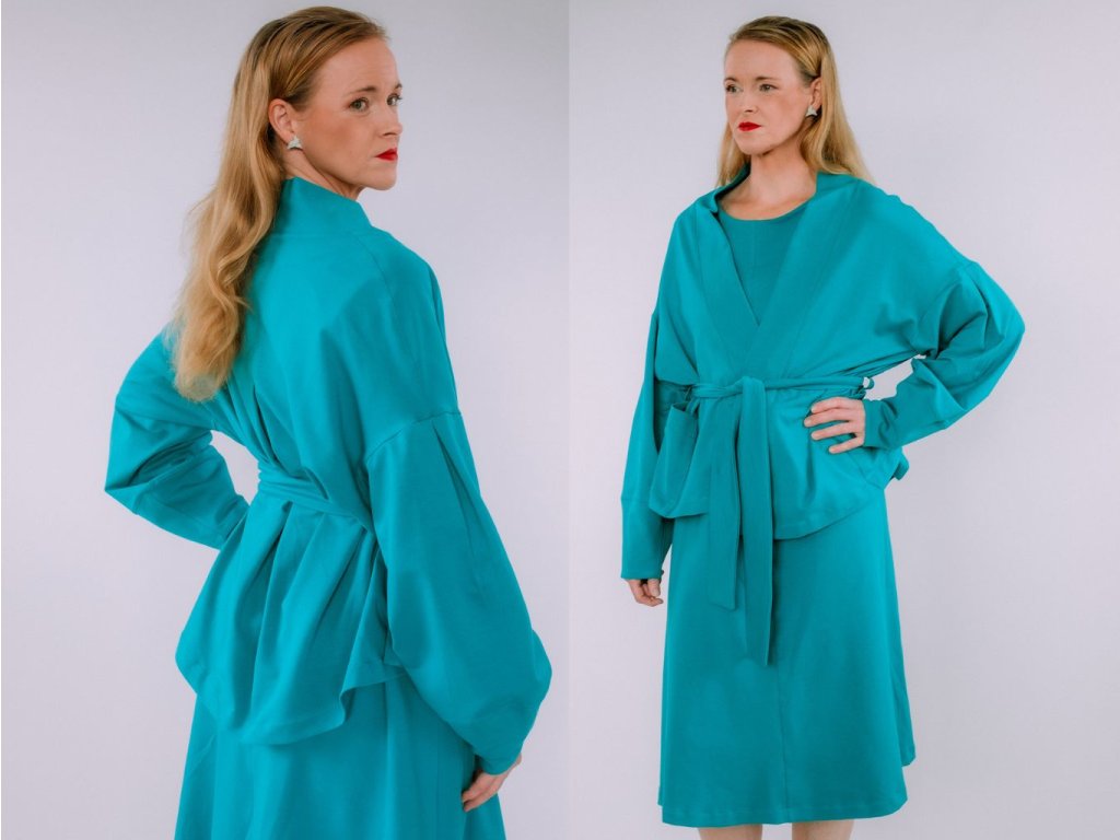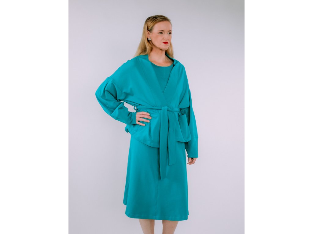 Univerzálny, nadčasový a praktický kúsok, ktorý si zamilujete. Kardigan Vera je ušitý z elastickej teplákoviny a vďaka premyslenému strihu ponúka viac možností nosenia – môžete ho nosiť voľne, previazaný opaskom (ktorý je súčasťou) alebo ako extra vrstvu pod kabát.