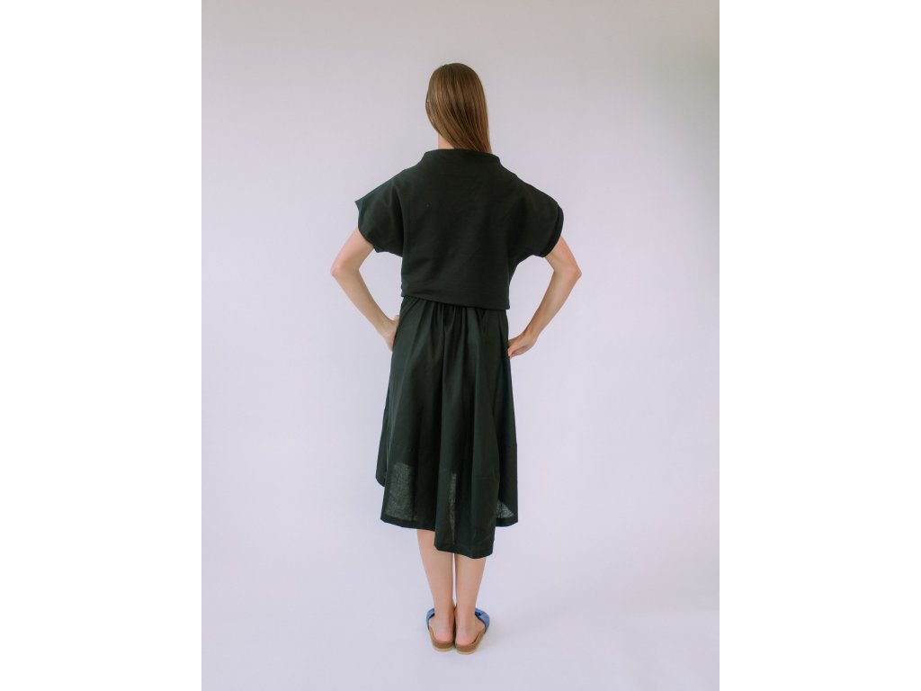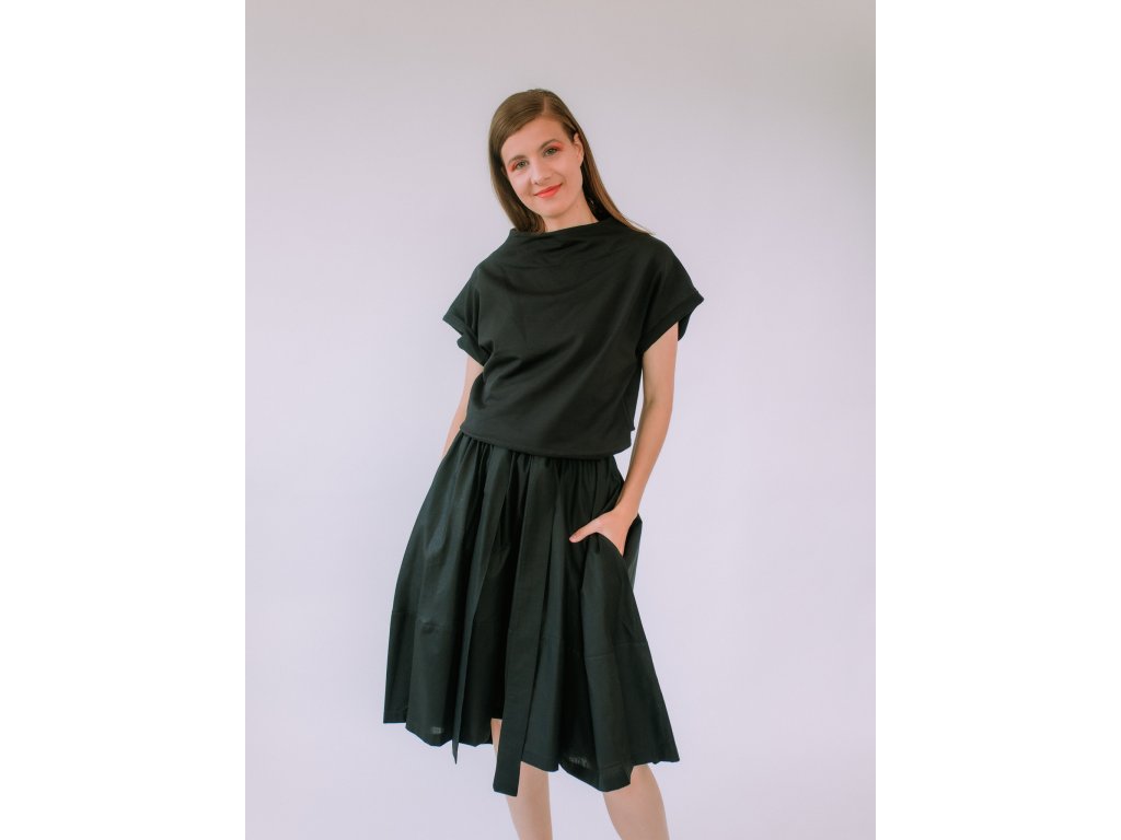Jednoduchý, no nadčasový top, ktorý spája pohodlie a štýl. Vyrobený v limitovanej edícii z príjemného, elastického bavlneného materiálu, ktorý je ideálny na každodenné nosenie. Voľný stojatý golier dodáva topu elegantný nádych a jemnú originalitu. Skvelo sa kombinuje s nohavicami alebo sukňou s vyšším pásom, čím vytvoríš vyvážený a moderný outfit. Tento kúsok je praktický, ľahko kombinovateľný a vyrobený s dôrazom na kvalitu a detail – ideálny doplnok šatníka pre milovníčky komfortu a minimalistického dizajnu. Bonusom je, že tento top môžete nosiť celoročne. Stačí ho použiť ako vestu - napríklad na košeľu, na rolák, na tričko s dlhým rukávom...