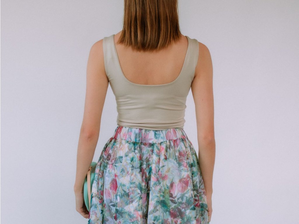Top TOBI výborne drží tvar, mierne sťahuje a spevňuje postavu podobne ako športový top. Vďaka strihu a materiálu je ideálny pod sako, pod tylový top Titus, pod vestu Lujzu – no zároveň vynikne aj ako samostatný kúsok. Skvelo sa kombinuje s čímkoľvek s vyšším pásom – s našimi tylovými sukňami Soňa, aj s bambusovými nohavicami.