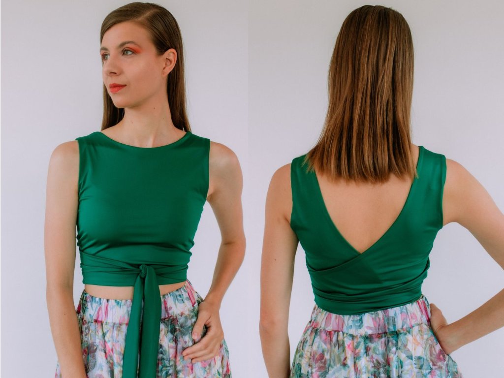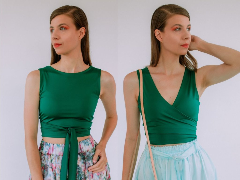 Top je obojstranný – môžete si ho zaviazať podľa toho, ako sa práve cítite.