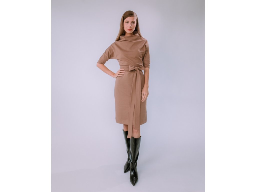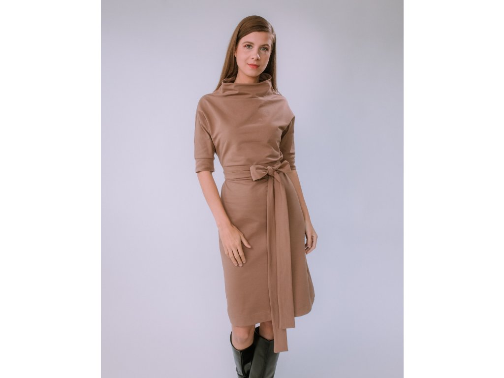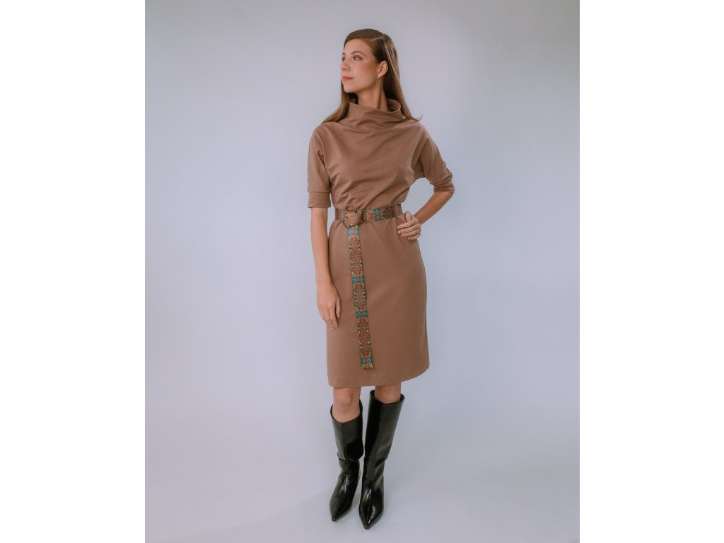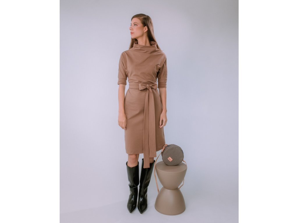 VOĽNÉ TEPLÁKOVÉ ŠATY S OPASKOM SANDRA (TMAVÁ MOCHA) | MIESTNI