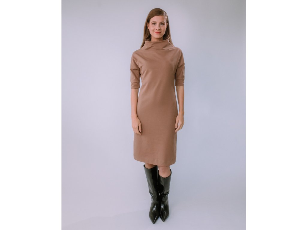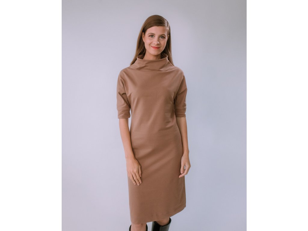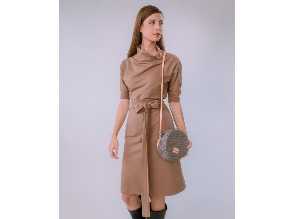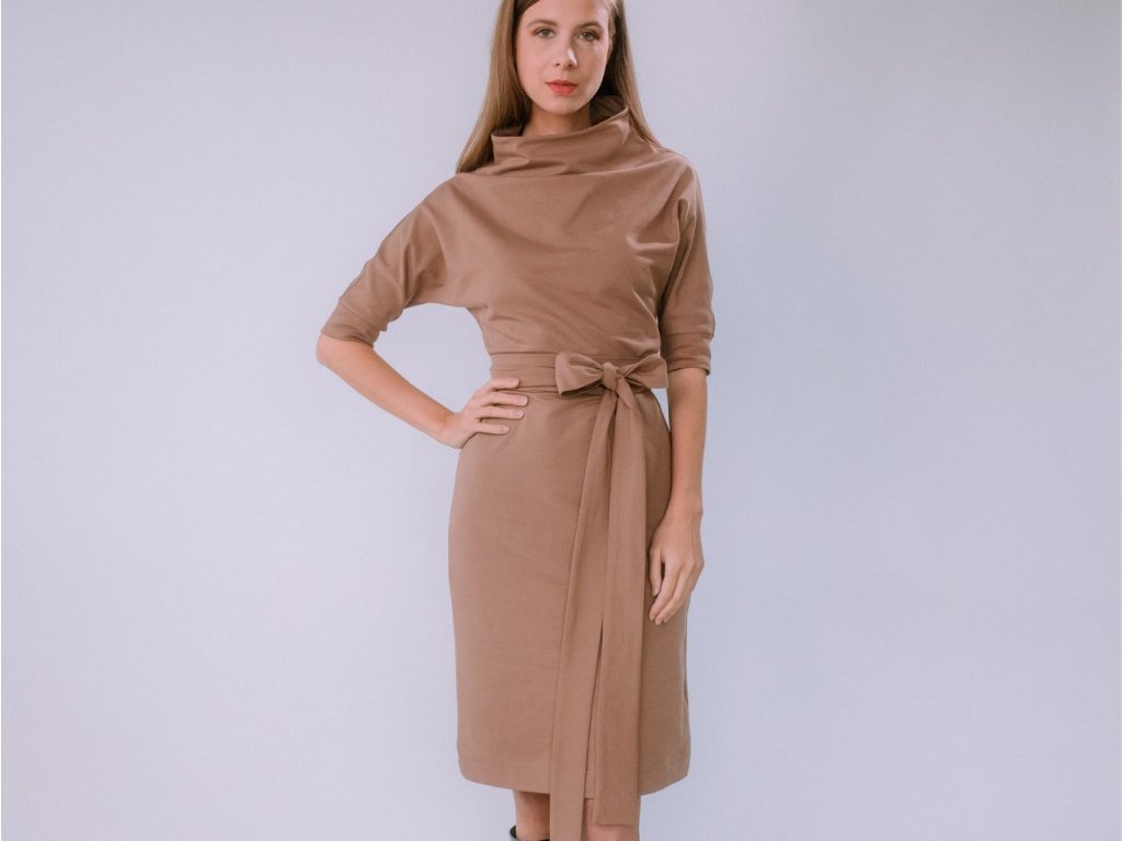 VOĽNÉ TEPLÁKOVÉ ŠATY S OPASKOM SANDRA (TMAVÁ MOCHA) | MIESTNI