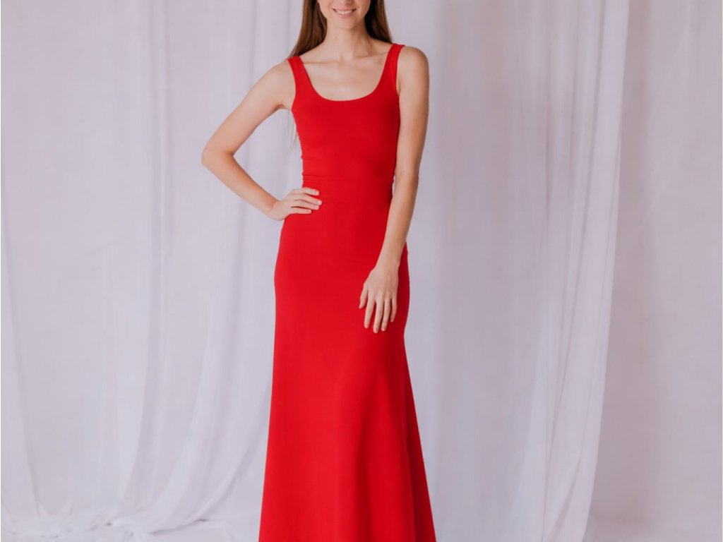 DÁMSKE DLHÉ ŠATY Z PLAVKOVINY TÁLIA (ČERVENÉ) | MIESTNI