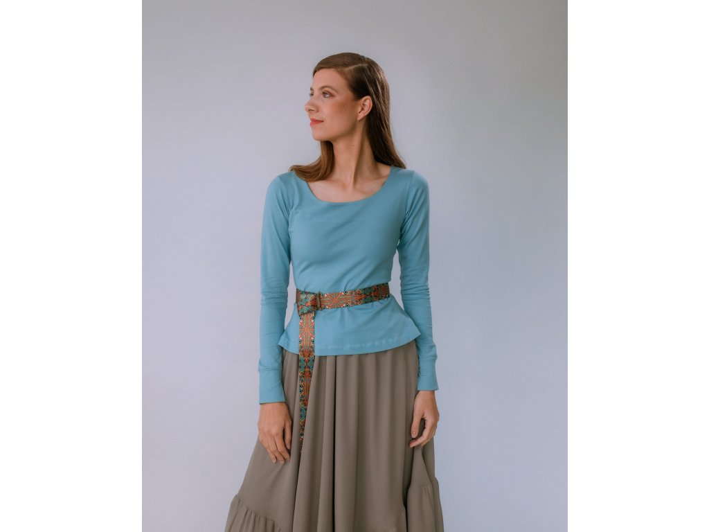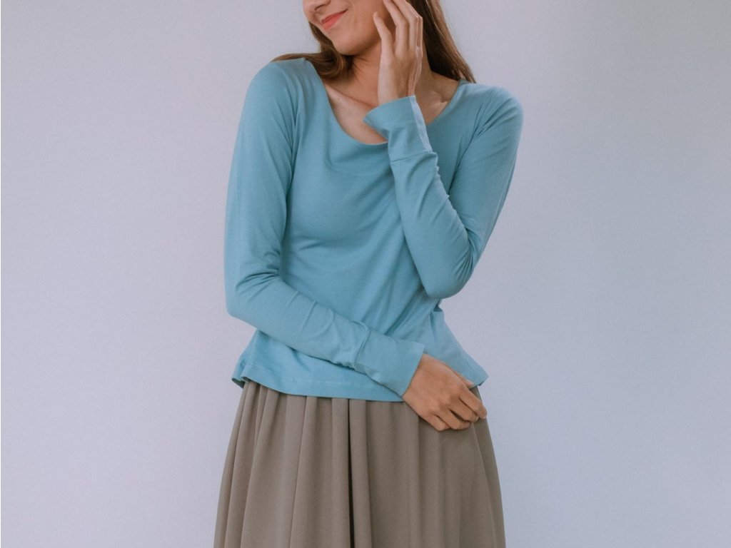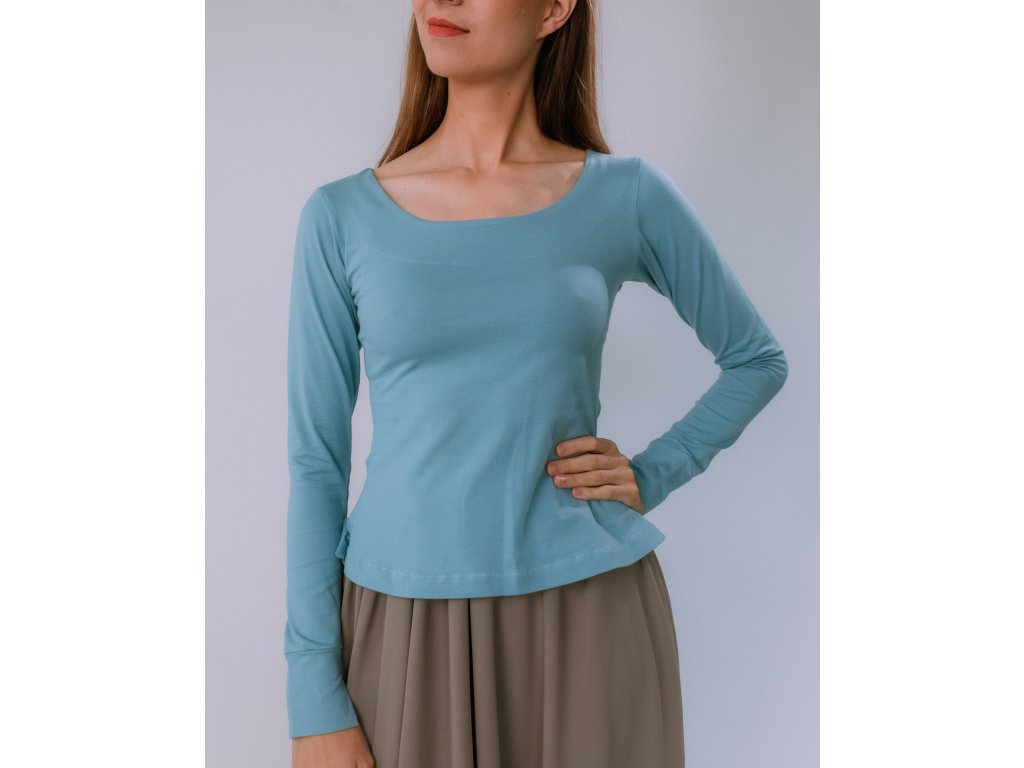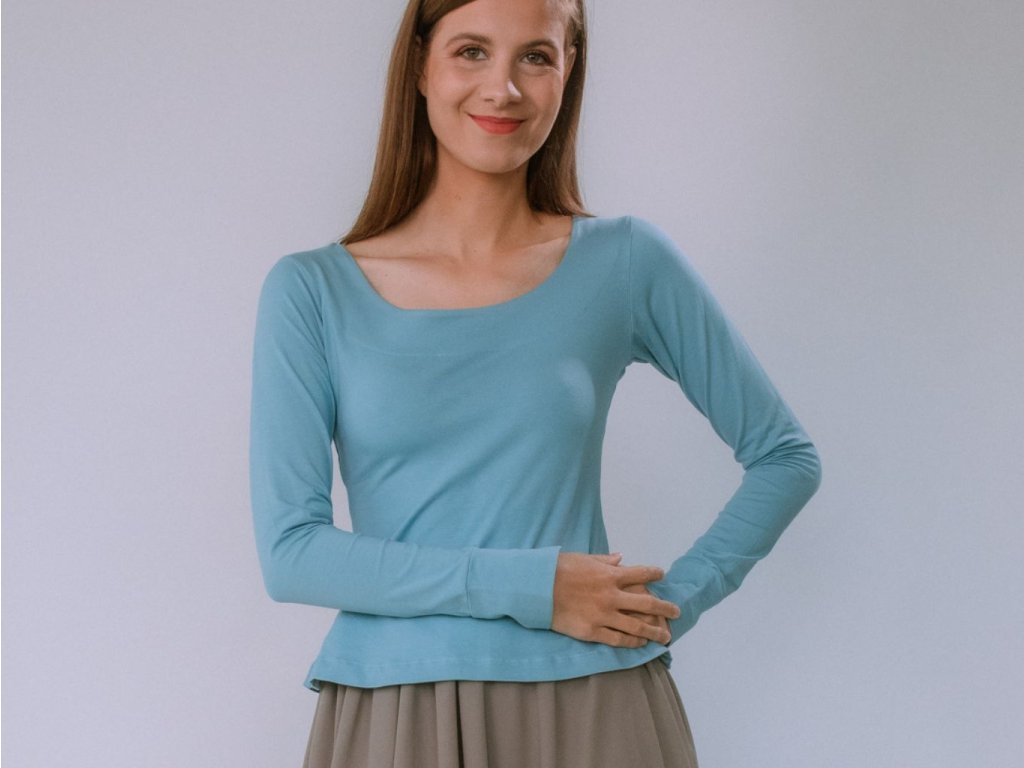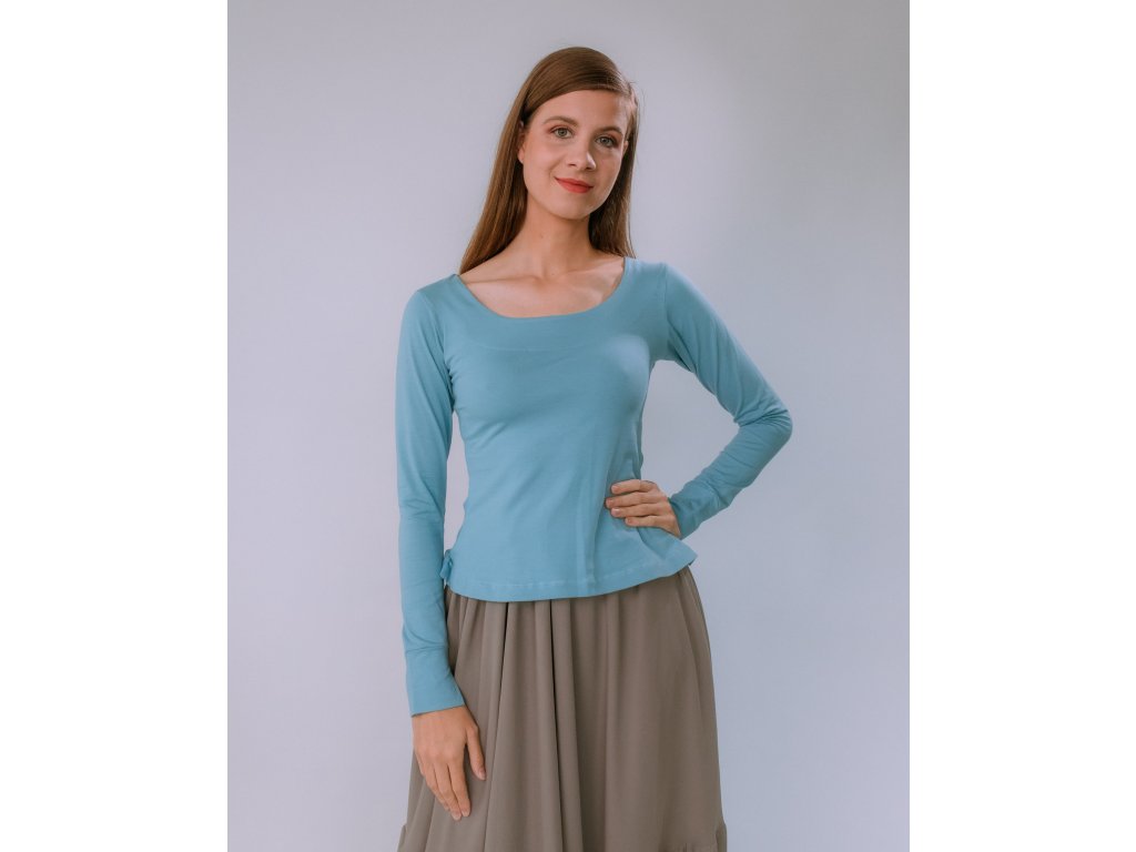 Jednoduché bavlnené tričko s dlhým rukávom. Má výrazný výstrih na prednom diely. Super dlhé rukávy sú zakončené manžetou. Máme vo veľkostiach XS, S, M, L, XL. (V každom prípade, ho vždy viete top vrátiť alebo vymeniť :))