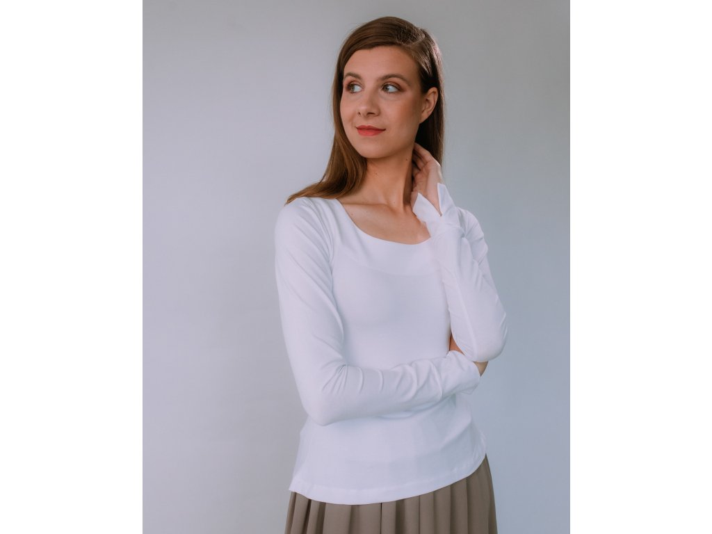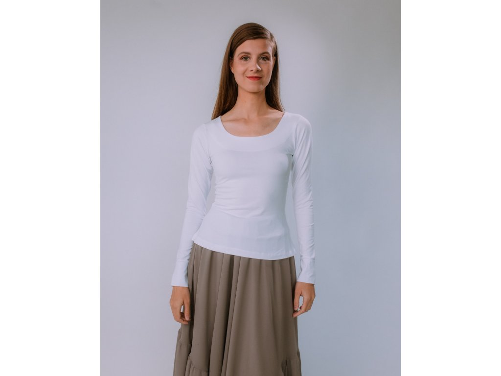 Jednoduché bavlnené tričko s dlhým rukávom. Má výrazný výstrih na prednom diely. Super dlhé rukávy sú zakončené manžetou. Máme vo veľkostiach XS, S, M, L, XL. (V každom prípade, ho vždy viete top vrátiť alebo vymeniť :))